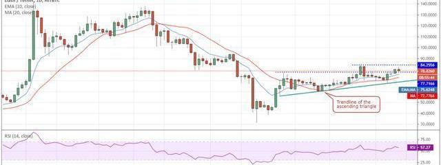 Dash突破上方阻力位77.7166美元,从而完成了上升的三角形形态。然而,空头正在积极捍卫84.2556美元,这是4月9日创下的盘中高点。