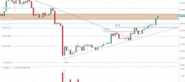 ETH已经反弹到昨天提到的目标位,短线支撑210-215,阻力位245。