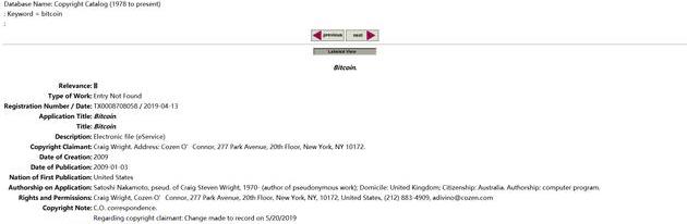 一句话,这些申请和版权声明只是形式,CraigS.Wright并没有明确获得具有法律效力的比特币版权。