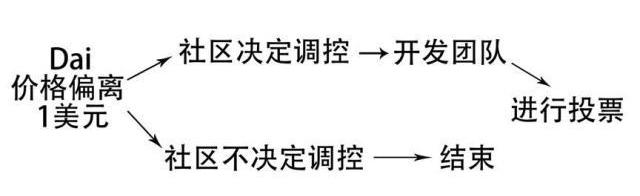 Dai的目标是实现与美元1:1挂钩。当其价格长期偏离1美元时,社区会进行讨论,决定是否进行投票改变稳定费率。目前稳定费率低调节一共有9档,档位区间为1%,其9档分别为:-4%、-3%、-2%、-1%、不变、+1%、+2%、+3%、+4%。之前的档位区间存在0.5%,但是经过多次投票发现,0.5%的区间跨度太小,无法有效调节Dai的价值,故形成了目前这一档位。
