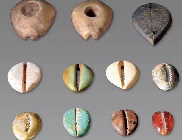 玉质贝币除国的这种铜贝除形制仿照磨去背面的海贝外,面部铸有阴文之外。还有鎏金贝,鎏金贝币是完成铜贝的制作步骤后,再予铜贝外层通体鎏金,增强铜贝作为货币的价值属性。可以说鎏金贝是铜贝的升级版。