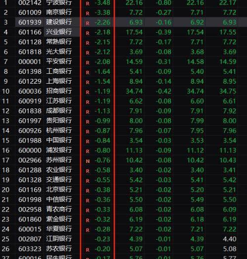今日开盘后,银行股下挫,南京银行、宁波银行跌逾3%,建设银行、兴业银行、平安银行等跌逾2%。