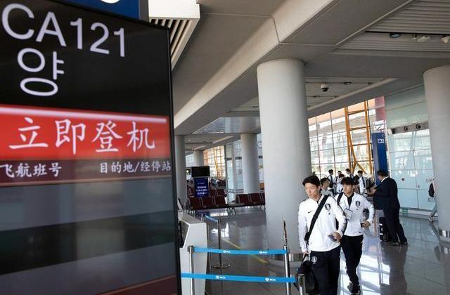 韩国队由中国转机飞往平壤图片来自AP据韩国《中央日报》报道,在访朝前,韩国足球协会为了让球员能够按时起床,甚至特意购买了32个闹钟发给球员。