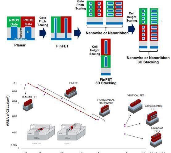 硅基半导体随着Moore定律越来越吃力,必将走到极限。虽然我们的工艺进步可以延缓这个过程,比如从平面的Planar-FET,FD-SOI到立体的FinFET,乃至所谓CFET。3DFET延缓了这个过程,等效于尺寸缩小。