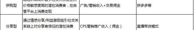 该模式下,平台依托社交关系链促进用户裂变和商品传播,按照平台商品是否自营同样可分为2类,具体的商业模式与盈利构成如下表: