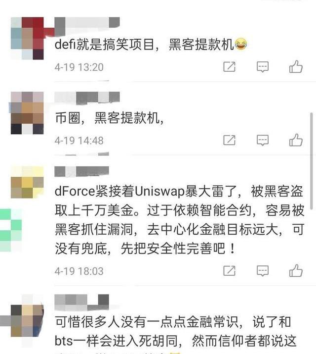 dForce创始人杨民道也立即发声明称:目前团队正在积极补救,包括: