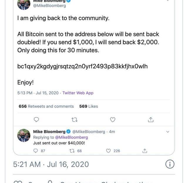 福克斯报道称,包括比尔·盖茨、埃隆·马斯克、杰夫·贝佐斯和迈克·布隆伯格在内的商界领袖分享了这些推文,这些推文后来被删除。民主党总统候选人乔·拜登和前总统奥巴马也在推特上转发了这条消息。