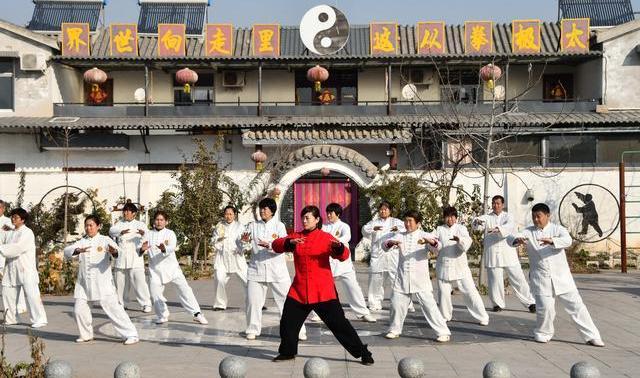 太极拳爱好者在河北省邯郸市永年区杨露禅太极拳学院习练太极拳。