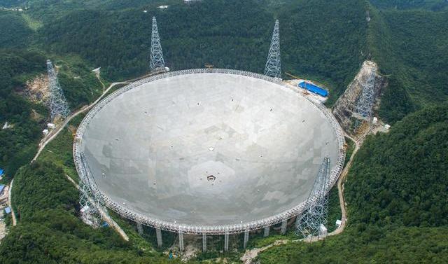 中国天眼“FAST”,是口径达到500米的球面射电望远镜,是中国自主设计建造的,是全世界最大的,也是性能最先进的射电望远镜。中国天眼主要用于寻找暗物质、暗能量和收集宇宙中的各种信号。