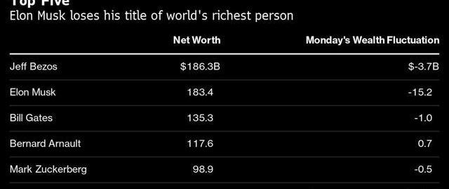 比特币在2月第一次突破大关之后,币圈、美国财政部和证监会对其瑟瑟发抖。在暴涨之后,比特币又连续下挫,两天内最大下跌过1.3万美元,而马斯克也因此跌落世界首富宝座——资产一日之内缩水152亿美元,亚马逊公司创始人杰夫·贝索斯重新夺回榜首。