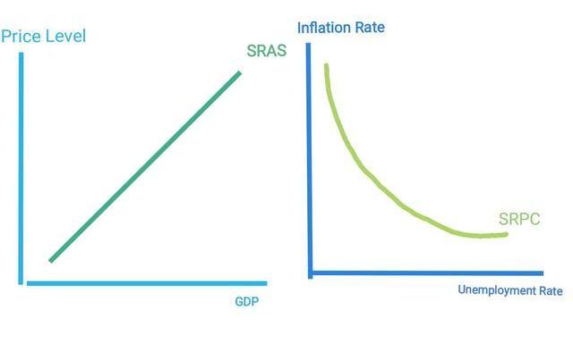 要想找到能shiftSRPC的因素,我们可以把SRAS看成SRPC的一面镜子,物价和通货膨胀率成正比而GDP和失业率成反比,而反映到图像上,也是一个downwardsloping一个upwardsloping。