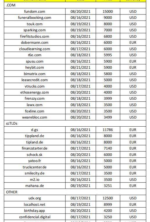 当地时间8月20日,英文域名Fundom.com以$15,000美元成交,领先本周Sedo域名销售周榜单;