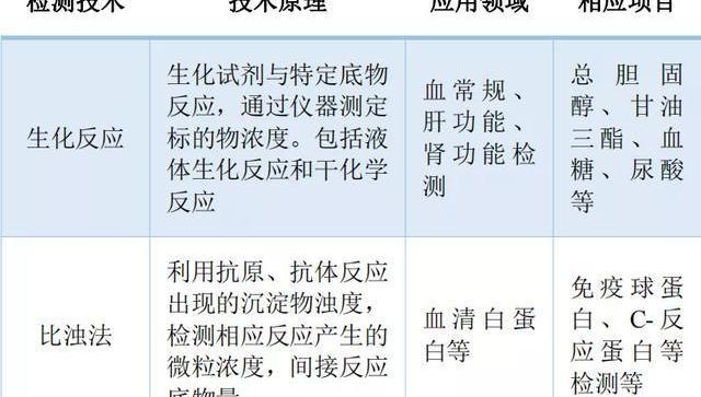 生化诊断仪器多采用开放体系,诊断试剂等产品技术成熟,市场竞争激烈,后续关注集采风险。生化诊断通过检测样本中酶类、糖、脂、蛋白质、无机元素等生化指标判断机体血糖、血脂、胆固醇、肝功能、肾功能等。2010年生化诊断市场约40亿元,2018年市场规模突破100亿元,年复合增长率维持在8%左右。生化诊断是体外诊断主要细分领域中增长最慢的,由于进口仪器采用开放体系,国内配套试剂生产厂商较早进入该领域,产品技术成熟,市场竞争激烈,格局较为稳定。目前临床应用较为广泛的包括生物化学反应、免疫比浊法等,为医院的常规检测项目。两者检测原理和适用的具体检测指标存在一定差异,相互之间也没有可替代性。生化检测较便捷、成本低,短期被其它检测技术替代可能性不大。但在医保控费、医疗器械集采政策加速落地背景下,生化检测试剂5年内纳入集采的可能性较大,近期安徽等地已在试点推行IVD试剂集采。