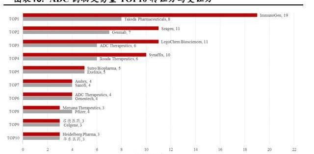 截至2022年4月17日,从ADC相关的交易我们可以看到ImmunoGen、Seagen、LegoChemBiosciences、Synaffix转让的次数最多,证明了它们在ADC领域卓越的研发实力,我国在该领域与国际先进水平尚有较大差距。