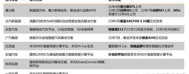 华为汽车领域的合作伙伴?