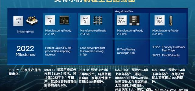 除了大刀阔斧地扩建晶圆厂,英特尔在先进制程领域也是胜券在握。