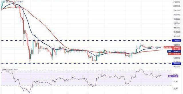 相反,如果价格从17,622美元回落并跌破20日均线,则表明空头尚未放弃。此后该货币对可能会在15,476美元至17,622美元之间的较大范围内盘整。