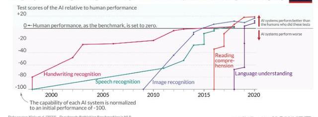 AI系统的语言与图像识别能力得到了迅速改进资料来源:OurWorldinData