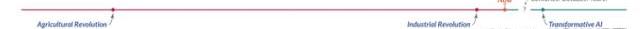 一旦某项技术普遍改变了各种商品或服务的生产方式,就会被称为是“通用技术”。OurWorldInData的团队认为,人类有两种主要的通用技术:1)农业革命赋予我们大规模的粮食生产,让我们从狩猎和采集过渡到农业;2)工业革命赋予了我们大规模制造的能力。我认为互联网的出现——也就是数字革命——将标志着第三次革命的出现。但我也同意他们的观点,TransformativeAI是下一个通用技术:
