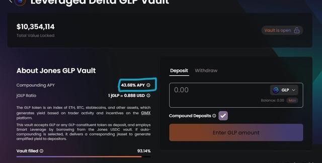 当我进行更深入的研究、并研究了其中一些金库时,我们发现他们的回报率大约在25-50%APR。当然,APR也会随着时间的推移而变化,具体还需要取决于GMX使用情况、交易者的盈利能力等。