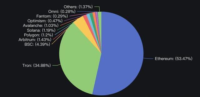 而从份额来看,以太坊主网和Tron主网的稳定币份额两家合并占据了大多数份额。由于种种历史原因,稳定币市场的绝大多数份额始终被这两家所把握。