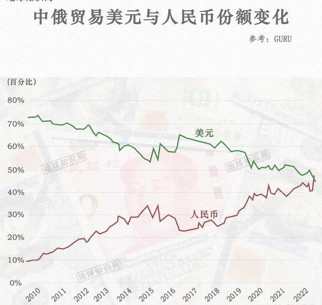 英国《卫报》报道,2022年,人民币支付在俄罗斯进口中的份额从俄乌冲突前的4%上升到23%。涉及人民币和俄罗斯卢布的交易现在已经超过了涉及美元和卢布的交易。俄罗斯的交易方现在越来越愿意接受人民币作为支付方式。
