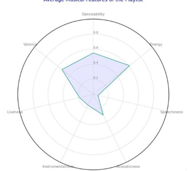 5、自动创建雷达图,例如,分析完某用户300小时的Spotify播放列表后,ChatGPT自动生成了雷达图。