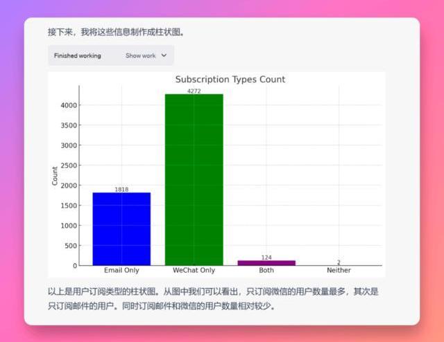 可以看到,代码解析器从分析数据到制图,都不需要使用任何复杂软件,只需要提示词就可以完成。