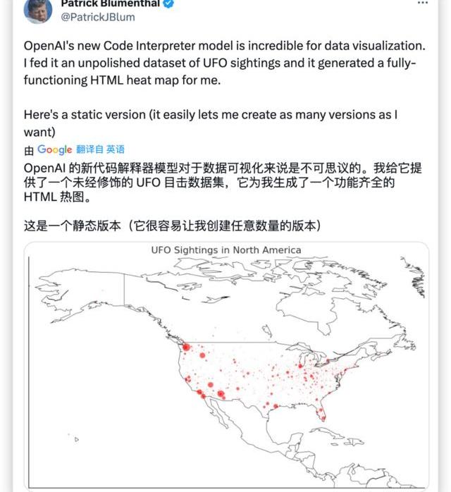 一位网友甚至用代码解释器生成了一个UFO目击地图:
