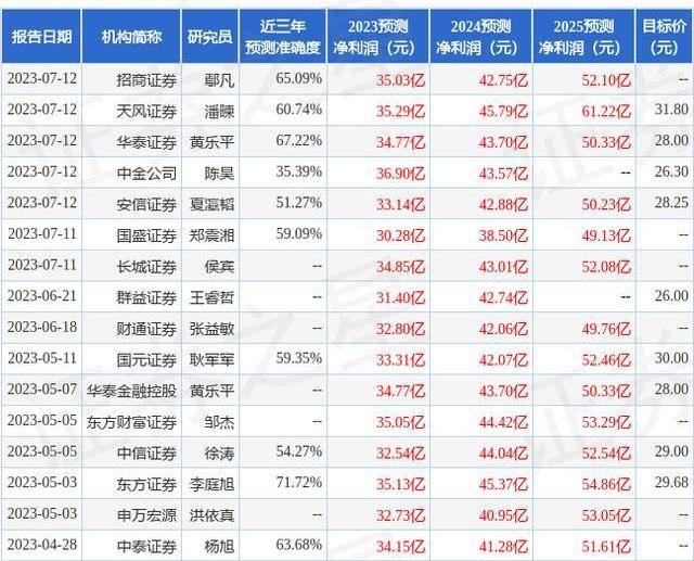 证券之星数据中心根据近三年发布的研报数据计算,东方证券李庭旭研究员团队对该股研究较为深入,近三年预测准确度均值为71.72%,其预测2023年度归属净利润为盈利35.13亿,根据现价换算的预测PE为21.3。