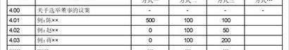 某投资者在股权登记日收盘时持有该公司100股股票,采用累积投票制,他在议案4.00“关于选举董事的议案”就有500票的表决权,在议案5.00“关于选举独立董事的议案”有200票的表决权,在议案6.00“关于选举监事的议案”有200票的表决权。