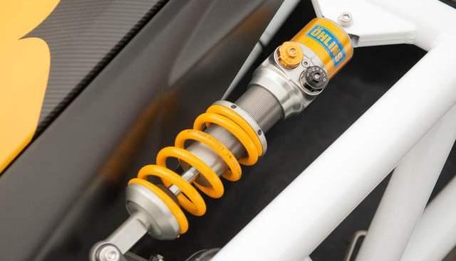 悬架采用标准Atom推杆系统,但配备?hlinsTTX36阻尼器,专为Atom4R设计和调节阀门,并可选择适合公路或赛道使用的优化?hlins弹簧。