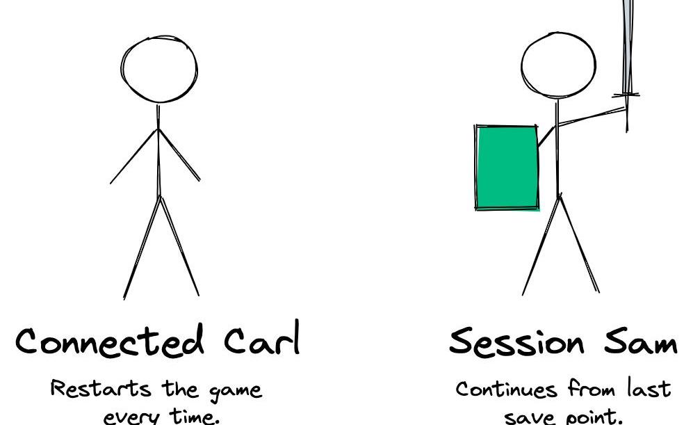 当应用程序想要与用户进行更丰富的上下文交互时,例如加载他们的偏好或私人聊天消息,我们需要首先确保我们正在与帐户背后的实际密钥持有者交谈,而不是假装控制帐户的人。“连接钱包”不提供此保证,但使用以太坊登录(SIWE)提供。换句话说,我们需要对用户进行身份验证以与他们建立会话以安全地读取和写入他们的数据。对于这个例子,我想介绍一下ConnectedCarl和SessionSam: