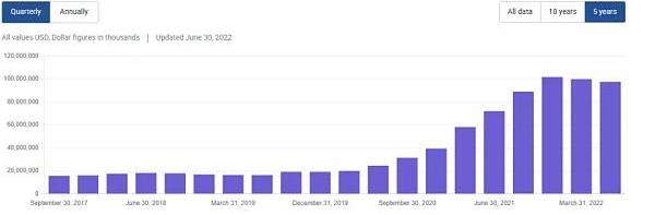 2020年下半年疫情担忧褪去后而美联储仍在承诺维持0利率很长时间,量化宽松持续进行,通胀也见不到影子,全球迎来了科技企业的融资热潮期,startups贷款和风投额度的快速增长使科技初创企业手里积累的大量的现金和存款,而这些存款很大程度流入了SiliconValleyBank这一硅谷最重要的、也是全美前20大的银行。2020年6月至2021年12月的一年半期间,SVB的存款由760亿美元上升到超过1900亿美元,增幅接近2倍。