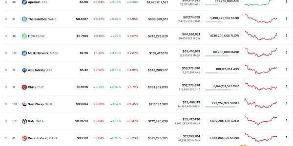 24小时NFT交易量、交易量前十项目数据来源:Coinmarketcap