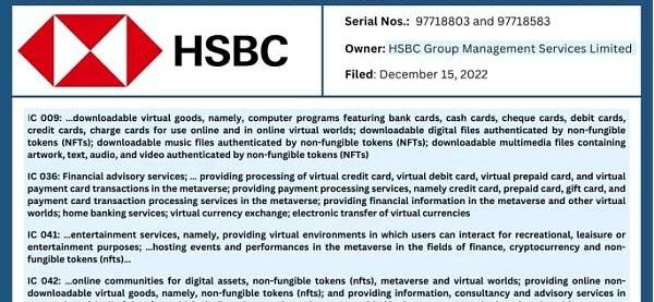 近期,华尔街投银巨头汇丰和富达在本月分别向美国专利商标局提出申请加密相关的商标和名称,其中包含加密货币交易、NFT、元宇宙金融服务和虚拟信用卡等内容。