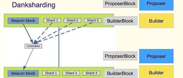 Danksharding以核心贡献者DankradFeist的名字命名,其主要创新是一个合并的收费市场,取代了原来数量固定、具有不同区块和提议者的分片,特定时间内的所有交易和数据将由提议者挑选。该提议者背后其实是一个随机生成的验证者委员会,负责对区块链数据的可用性进行抽样。这样一来,轻客户端的数据可用性就可以用去中心化的方式加以维护,而受制于合并后区块内的大量数据,这在单点验证中根本无法实现。由于共识节点也在执行数据可用性抽样,因此该模型能够将结算层、共识层和数据可用性层统一起来。