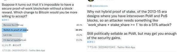 近日,Paradigm研究合伙人DanRobinson在推特上表示:事实证明,如果没有区块链奖励,就不可能拥有安全的POW区块链,并发起了一项“你更愿意比特币如何改变”的投票。随后众多KOL展开了互动,其中V神的观点获得了最广泛的支持,他表示对POW+POS的混合机制寄予厚望。一石激起千层浪,由此引发了许多社群对“最好的共识机制”的热议……