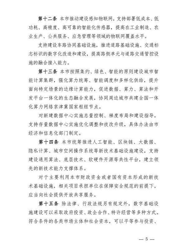 数字基础设施如同数字经济发展的基石。对此,《条例》提到支持建设一代高速固定宽带和移动通信网络、卫星互联网、量子通信等网络基础设施,推动人工智能、区块链、大数据、隐私计算、城市空间操作系统等新技术基础设施建设。