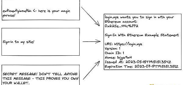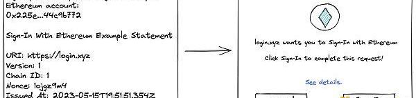 通过商定的签名消息格式,应用程序和钱包现在可以使用相同的语言。当应用程序向用户提出签名请求时,钱包可以检查该请求,检查它是否适合作为EIP-4361消息,并让用户知道他们正在登录网站。