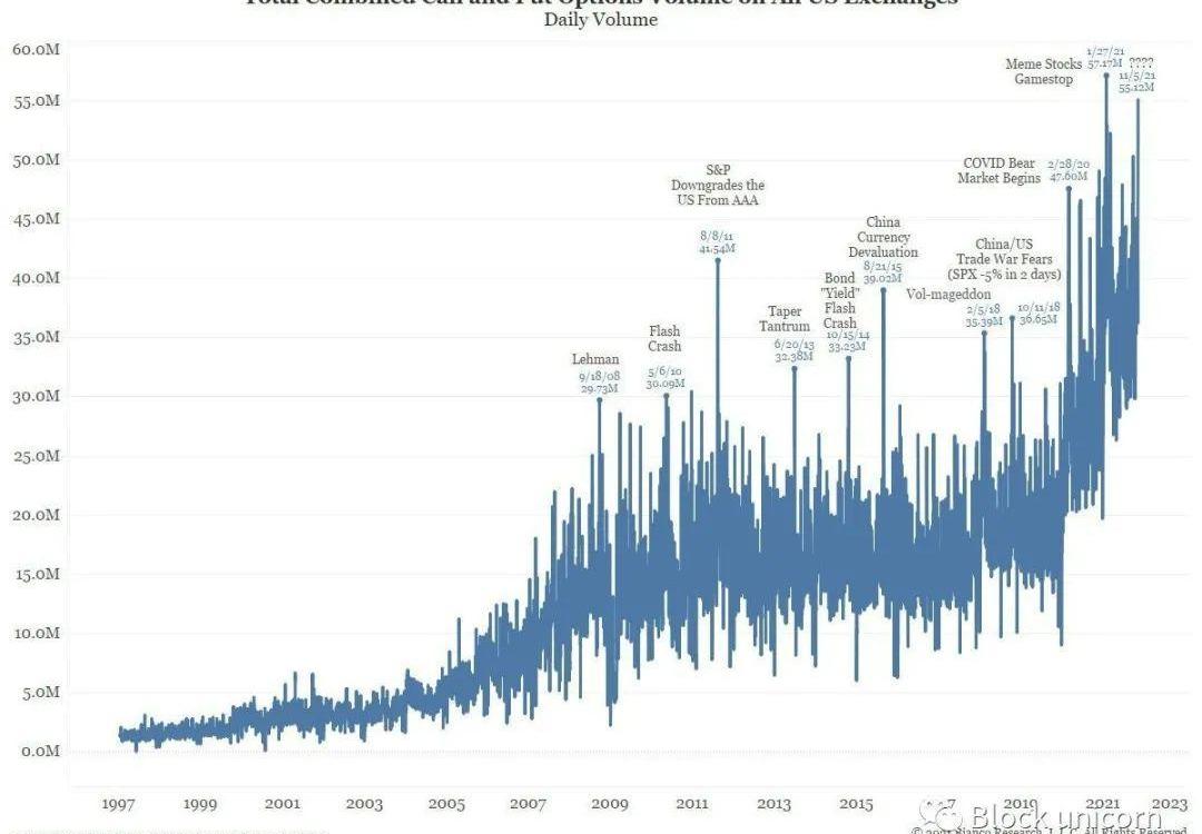 「GameStop挤压的主要驱动因素之一是大量购买看涨期权,这导致做市商通过购买标的股票来对冲看涨期权的持有,从而推高了股价。虽然工作人员确实发现个人客户的GME期权交易量大幅增加,从1月21日的5850万美元增加到1月22日的5.634亿美元,直到1月27日达到峰值24亿美元,但期权交易量的增长主要是由购买看跌期权,而不是看涨期权。此外,数据显示,做市商是在买入而不是卖出看涨期权,这些观察本身与GameStop挤压不一致。」SEC工作人员关于2021年初股票和期权市场结构状况的报告