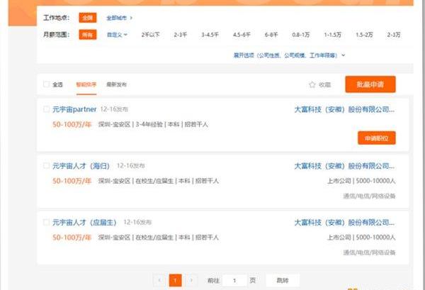 日前,大富科技百万月薪招聘元宇宙合伙人冲上热搜,引起了广泛关注。虽然大富科技很快将月薪百万修改为年薪,并设定区间在50-100万元/年,以及从招聘细则来看,具备3-4年工作经验本、硕、博应届毕业生”“能结合公司的产品特性和技术优势制定并完备元宇宙技术线路能带领元宇宙技术团队进行深度技术开发以及元宇宙相关底层技术、核心应用、3D引擎的优化等,似乎公司是在认真招聘人才。