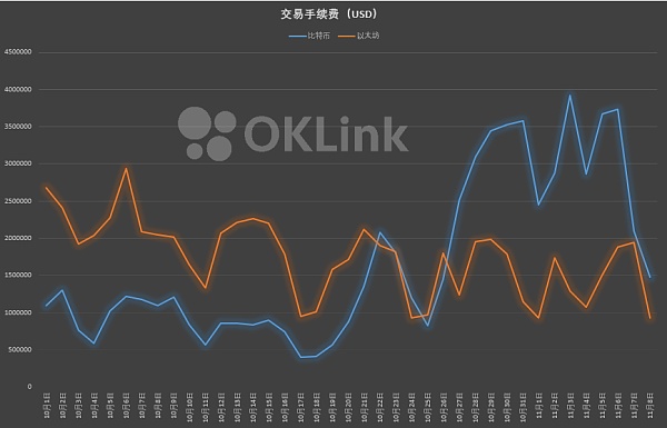 而同期以太坊链上交易手续费则为25210 ETH,约合1036.25万美元,较此前DeFi狂热时期,已经下降约85%。
