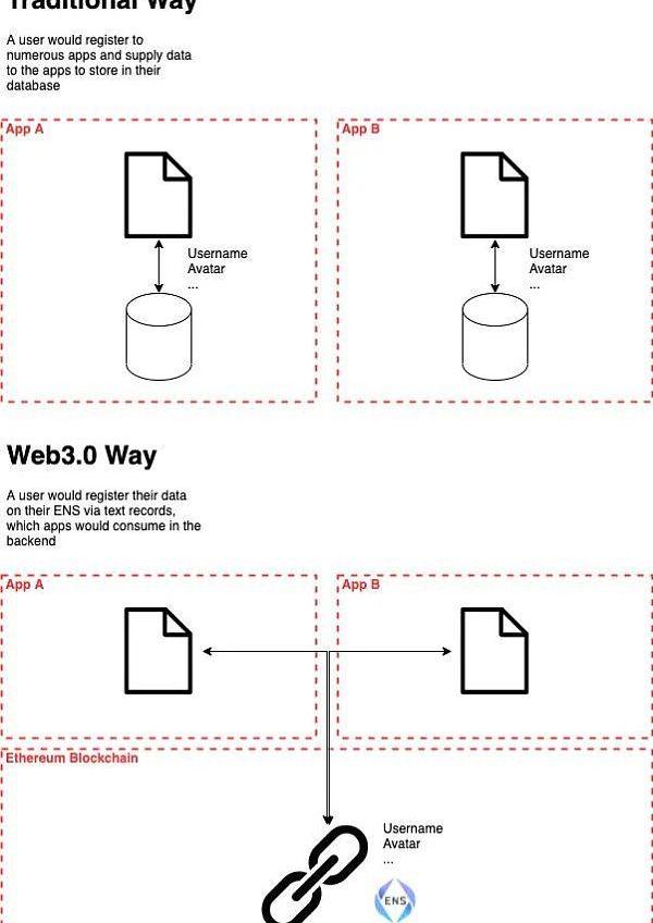 这个模型本质上是一个去中心化的、100%正常运行的、用户数据所有的“Gravatar”。数据不是由一个私有实体持有,而是发布到以太坊区块链供应用程序使用。用户将在多个应用程序中拥有一个身份,所有应用程序都通过用户的签名钱包进行身份验证。
