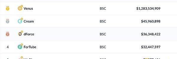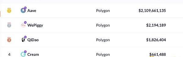 排名第四、第五已经并非以太坊链上应用,而是polygon上的aave和BSC的Venus。分别为21亿美元和12.8亿美元。