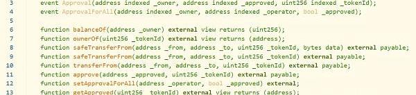 ERC-721协议规定了3种event和9种function用来实现token的转移、授权等操作以及对操作的记录。我们注意到,几乎所有的函数中都有一个叫做_tokenId的参数,该参数即为NFTtoken中用于标识每个token唯一确定的“身份证”。