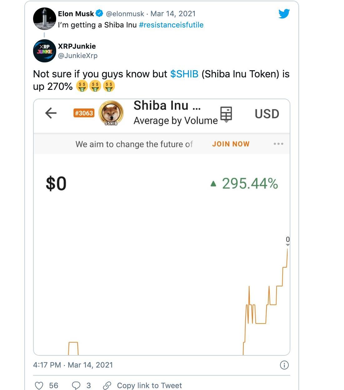 什么原因导致SHIB上涨?特斯拉CEO、自称为「狗狗币」之父的马斯克在推特谈及「柴犬」。5月7日,刚上任不久的联合国创新金融和可持续投资特使水野弘道在推特发文称,请Shibacoins的投资者不要像对待手里的币那样对待自己的宠物狗。马斯克随后回应称,“我想要一只小柴犬。”