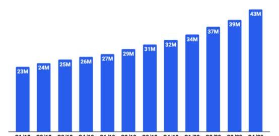 相应的,我们一开始的市盈率是207:310。与PayPal相比,这个估值似乎相当高,但PayPal的增长也在放缓。与市盈率超过450的Square相比,Coinbase似乎相当便宜。然而,Square在一段时间内一直以强劲的增长令人信服,并且越来越多地吸引美国以外的客户。