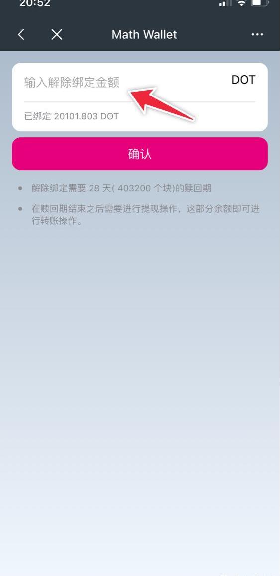 输入解除绑定的金额