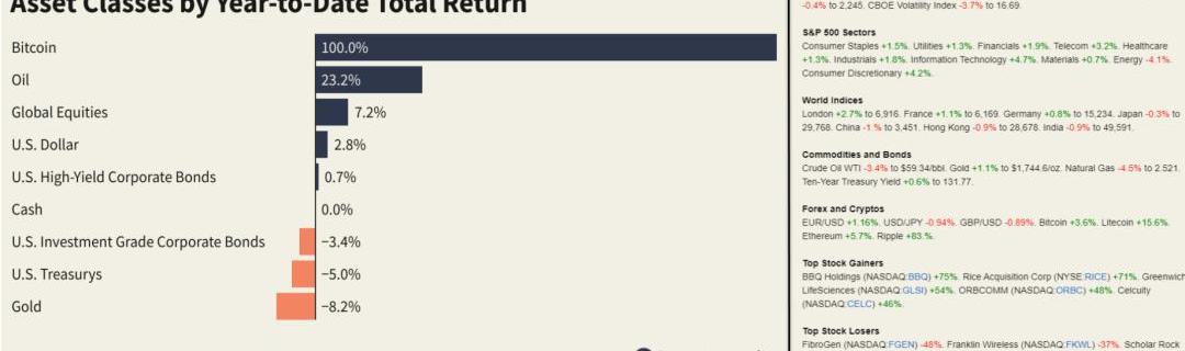现在股票中最热闹的是北美最大的加密货币交易所Coinbase,它计划在4月14日通过直接上市的方式上市。虽然本周记录被刷新,但交易再次低迷,成交量比过去30天的平均水平低28%。综上所述,道指本周攀升2%,标普500指数上涨2.7%,创下2月初以来最好的一周,纳斯达克指数上涨3.1%。